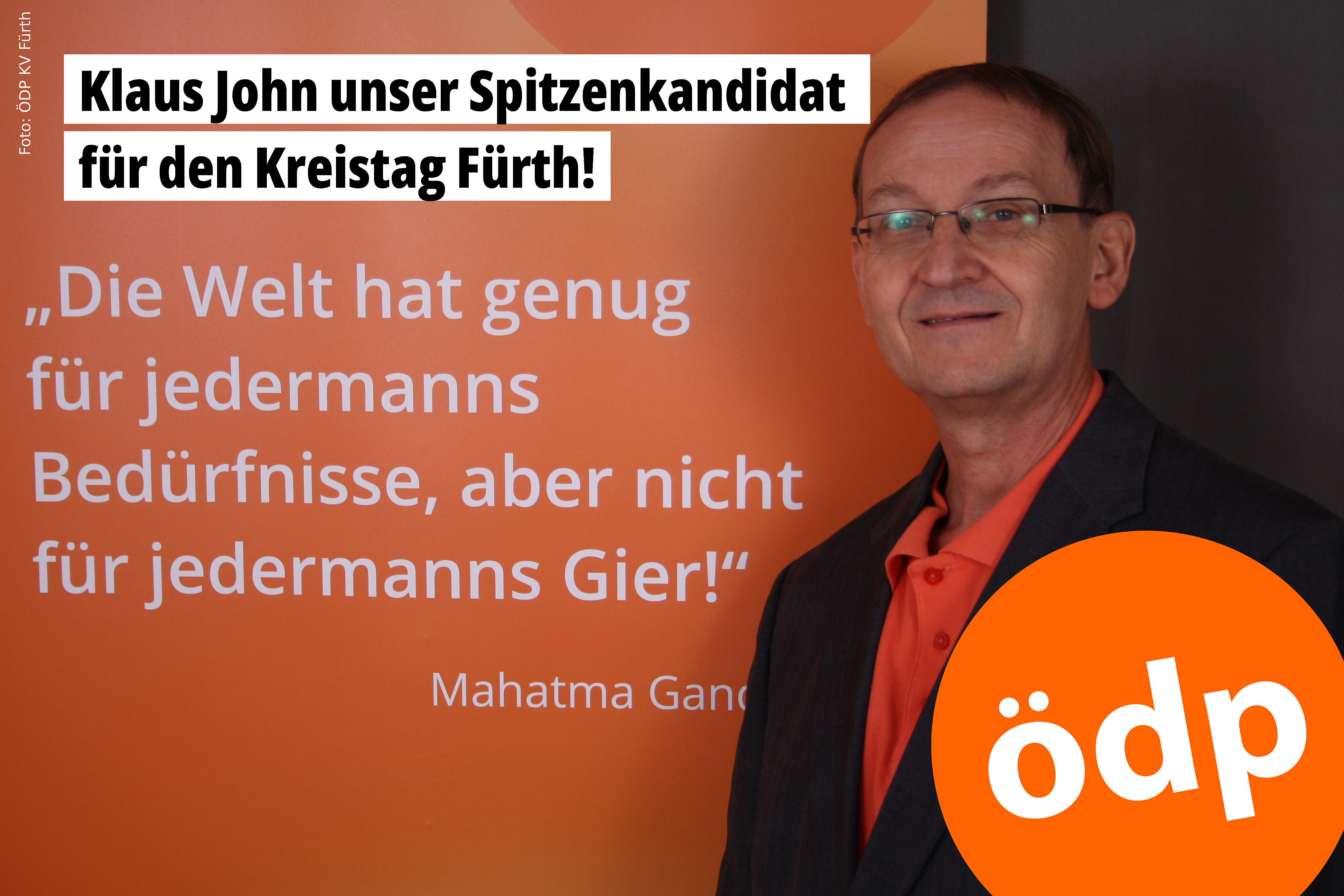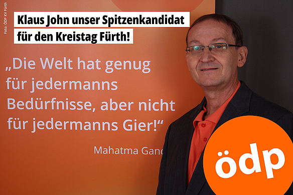 Klaus John, ÖDP-Kreisrat, setzt sich gerne auch weiterhin für die wichtigen Belange der Menschen im Landkreis Fürth ein und freut sich auf Ihre Stimme.